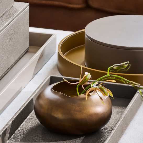 Beautiful handmade brass vase with a diameter of 15 cm and a height of 8 cm, in elegant Light Brown Patina.